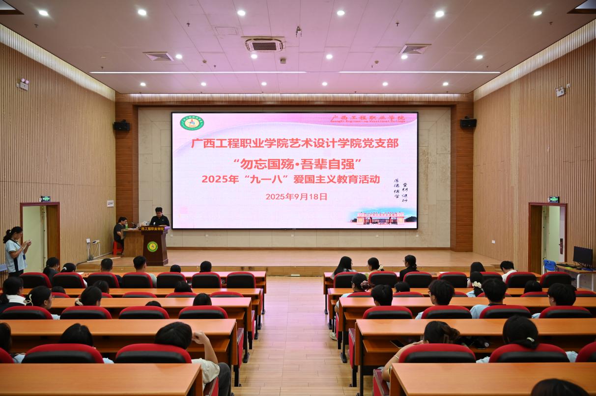 2025年9月18日晚,艺术设计学院党支部在图文信息大楼一楼学术报告厅开展了“勿忘国殇・吾辈自强”爱国主义教育活动。学院全体党员、发展对象、入党积极分子及学生干部齐聚一堂,活动由党支部副书记赵志辉主持。