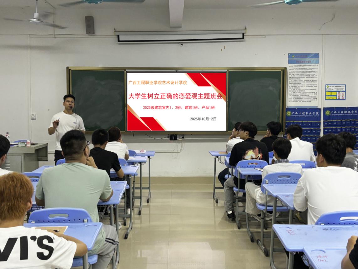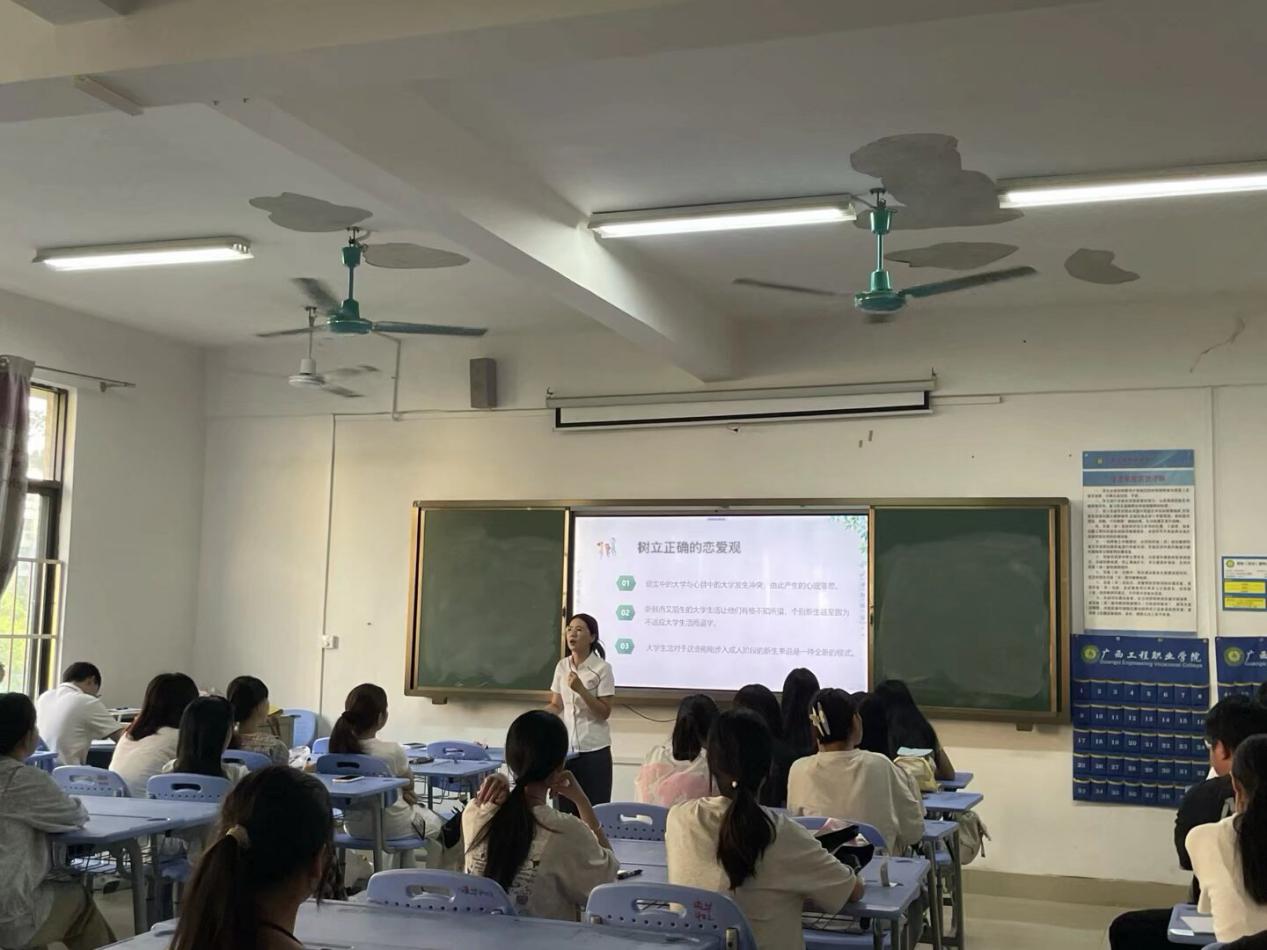 10月12日晚,辅导员蓝启成、冯俪琼分别为所带班级开展“树立正确的恋爱观”主题班会,引导学生建立健康、理性的情感价值观。