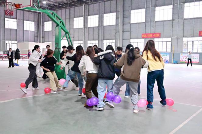 紧接着是小组踩气球环节,10支学生队伍轮番亮相,在限时2分钟的激烈角逐里,选手们灵活闪躲、巧妙出击,气球的爆裂声与此起彼伏的欢呼声交织成一片欢乐的海洋。