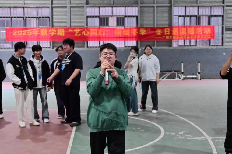 冬日暖阳融寒意,趣味活动暖人心。2025年12月23日下午,艺术设计学院“艺心同行·情暖冬季”冬日送温暖活动在学校风雨球馆欢乐开场。本次活动由学院党支部副书记赵志辉主持,2024级、2025级全体在校学生及各年级辅导员欢聚一堂,欢声笑语里,为冬日校园晕染开一抹暖人的亮色。