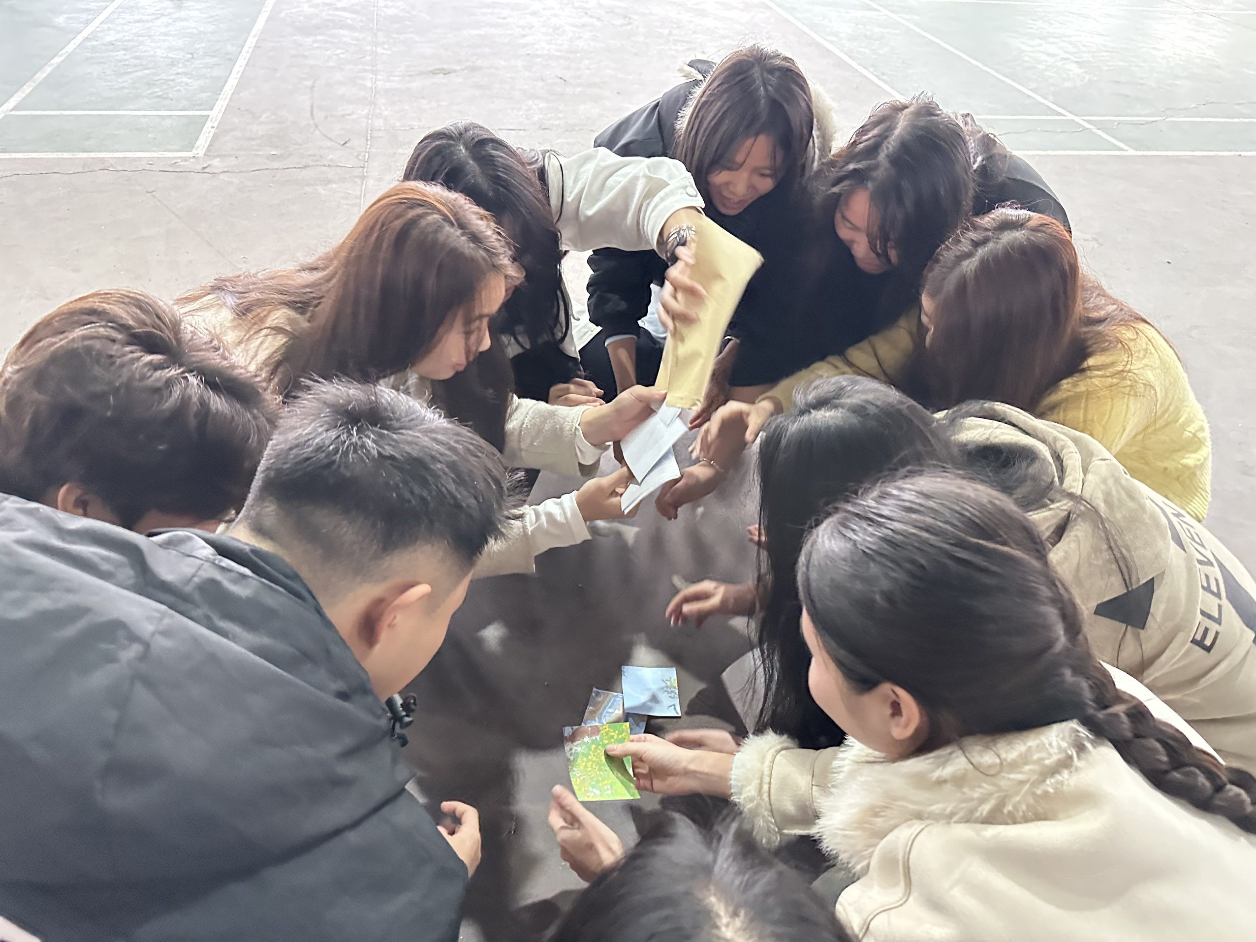 图为小组踩气球活动现场