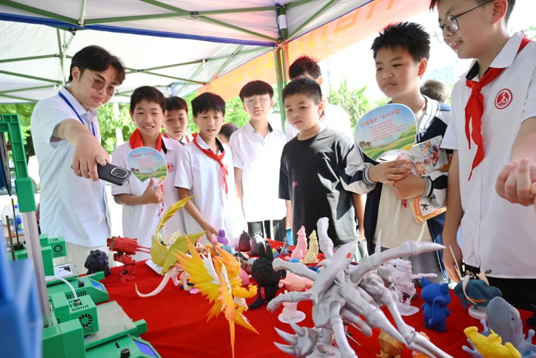 3D打印展区宛如一座 “科技魔法工坊”,特别为小学生群体设计了趣味十足的互动体验环节。现场不仅陈列着孩子们熟悉的各类小物件——如3D打印制成的卡通玩偶、迷你文具、小动物模型等,专业教师与学生志愿者还会手把手带领大家 “探秘”3D打印的原理与过程,让科技体验更具参与感。