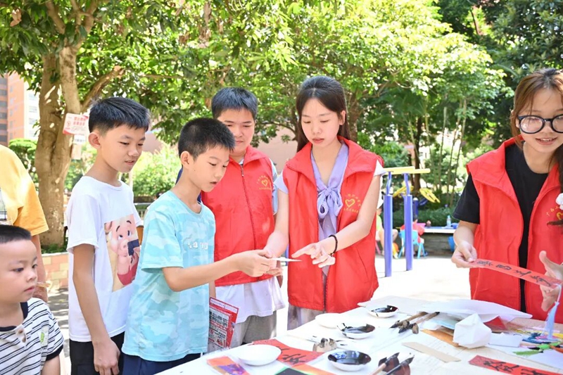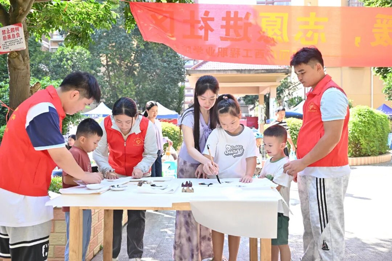 为进一步弘扬 “奉献、友爱、互助、进步” 的志愿服务精神,营造和睦、文明和谐的社区氛围,2025年8月28日,团委组织开展社区志愿服务活动。活动现场,志愿者们热情满满、积极行动,以 “笔墨传情” 为核心开展书法文化互动——他们铺展宣纸、研磨调墨,不仅手把手教社区居民握笔运笔的技巧,还结合大家需求书写寓意美好的短句与祝福。这场充满文化气息的志愿活动,既为社区注入了温暖活力,更在笔墨流转间拉近了邻里距离,生动彰显出社区互助友爱的和谐图景。