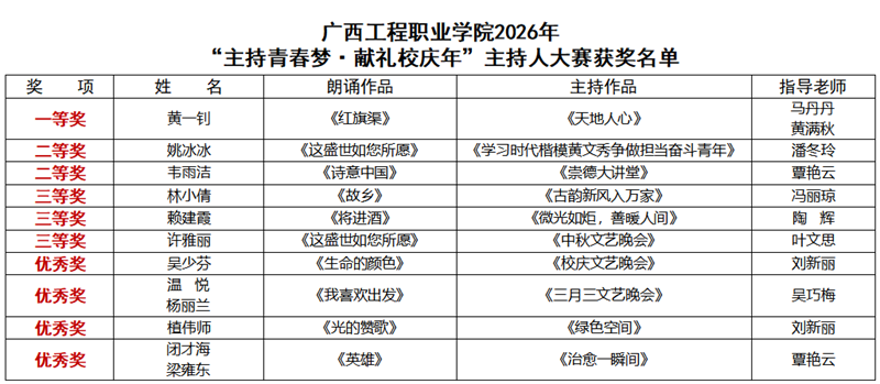 为喜迎校庆,传承校园文化,丰富师生精神文化生活,激发青年学子青春活力,同时发掘优秀主持后备力量,全面提升我校学生语言表达、临场应变能力与综合素养,4月10日晚,学校团委在图文信息大楼一楼学术报告厅举行2026年“主持青春梦・献礼校庆年”主持人大赛。