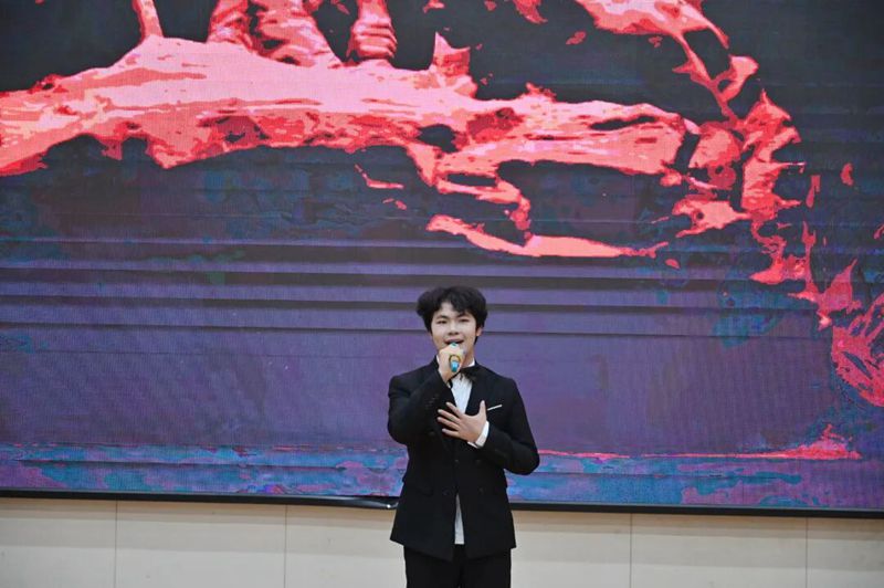 他希望同学们在舞台上用声音传递青春正能量,用语言表达诠释青年担当。在比拼中学习,在交流中成长,不负韶华、不负热爱。充分发挥自身优势,展现出当代大学生的青春活力、精神风貌和综合素养。用青春之声讲好校园故事、传递时代强音。