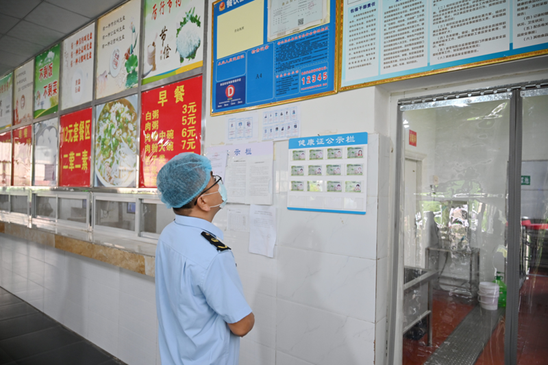 在烹饪操作间与备餐区,检查组重点查看餐具消毒记录、食品留样设备维护情况。现场可见从业人员健康证均在有效期内且集中公示,食品留样冰箱温度稳定,专用留样容器已完成清洗消毒。
