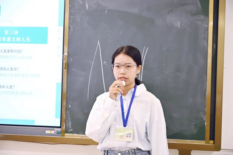 韦淑敏老师围绕 “创造有意义的人生” 展开教学,重点讲解 “得失”“苦乐”“顺逆”“生死”“荣辱” 五对人生矛盾的应对之道。教学中,她聚焦学生能力培养,引导学生从多角度看待问题、形成全面认知,进而提升分析解决问题的能力与批判性思维;同时指导学生对社会现象进行理性分析、提出独立见解,帮助学生在科学高尚的人生观指引下,正确对待人生矛盾、自觉抵制错误观念,努力提升人生境界,成就出彩人生。