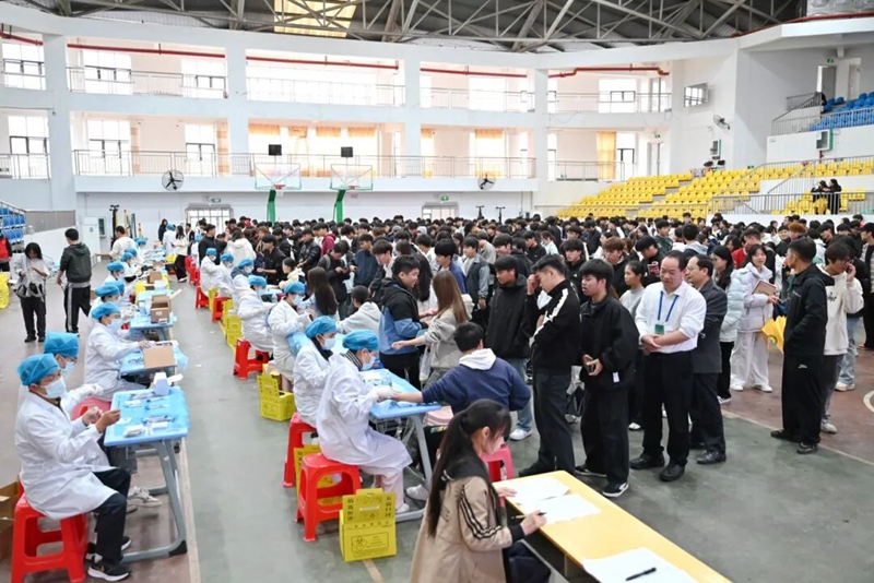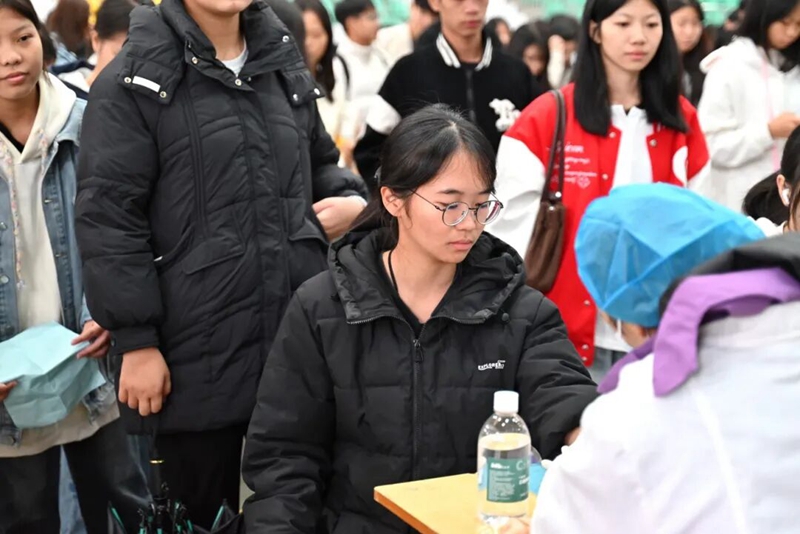 志愿者们认真履行职责,引导同学们有序排队候检,保证接种工作的顺利进行。