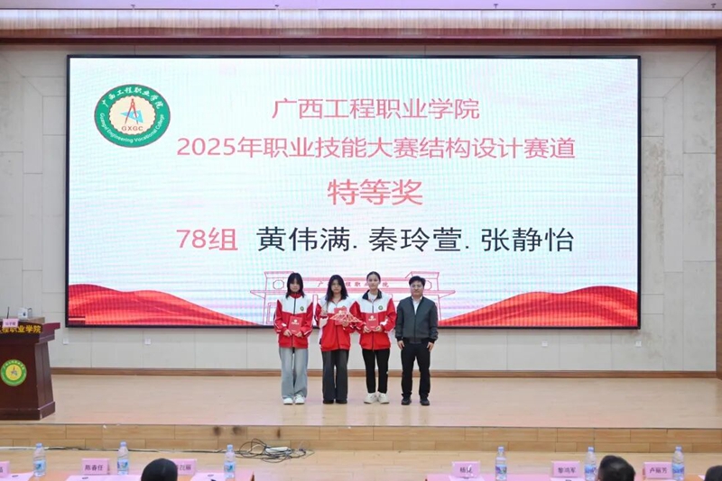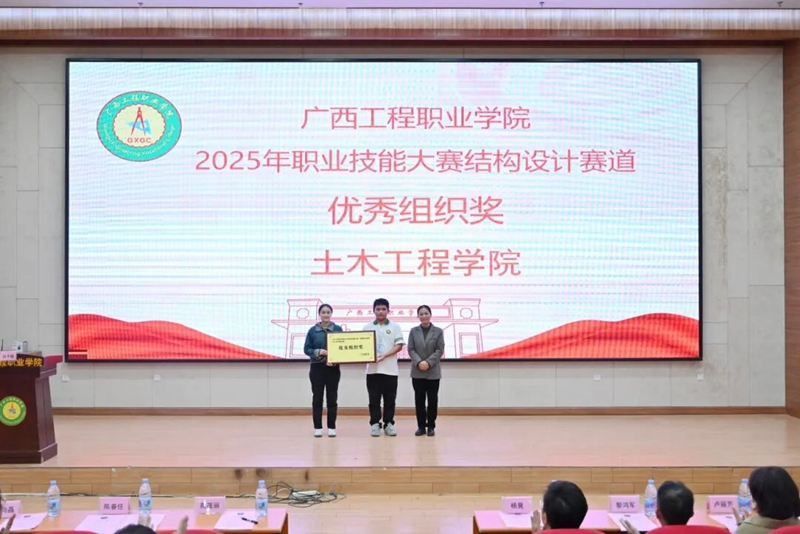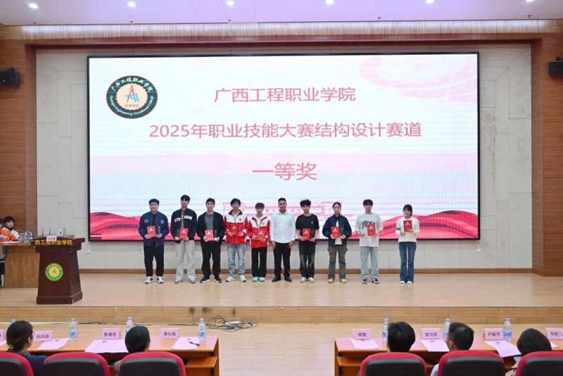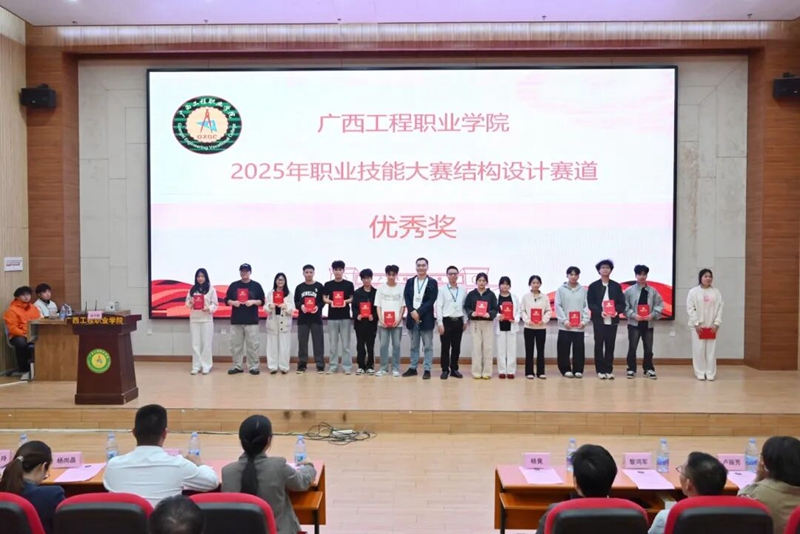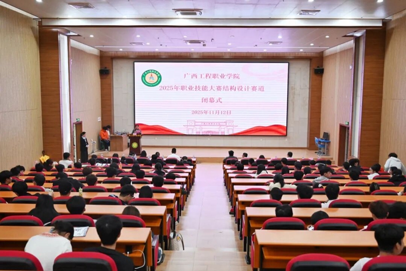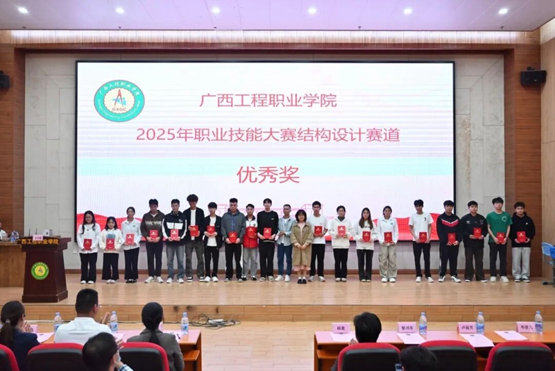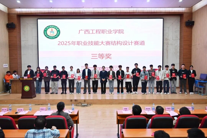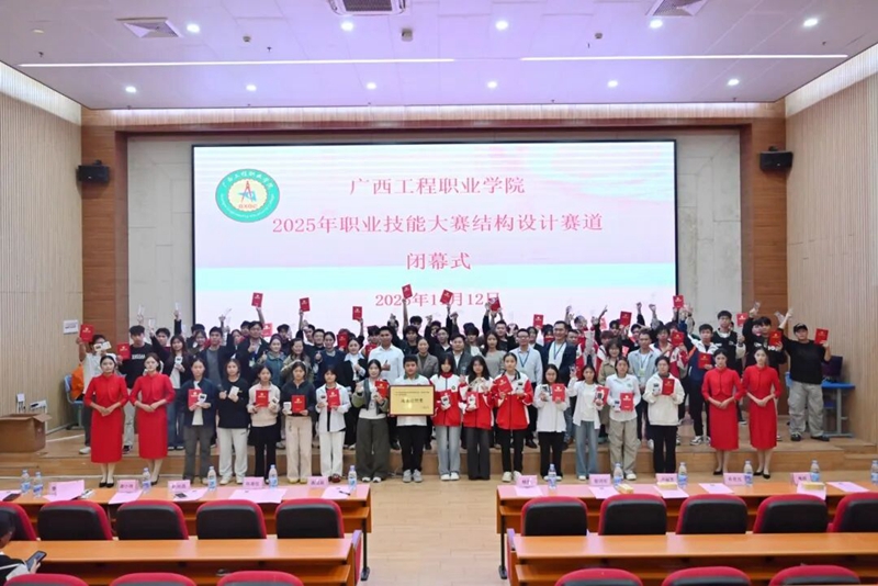 历经激烈角逐与不懈拼搏,广西工程职业学院 2025 年职业技能大赛结构设计赛道圆满完成各项赛程。2025年11月12日闭幕式暨颁奖典礼如期举行,领导、师生齐聚一堂,共同见证荣耀时刻,为这场技能盛宴画上圆满句号。