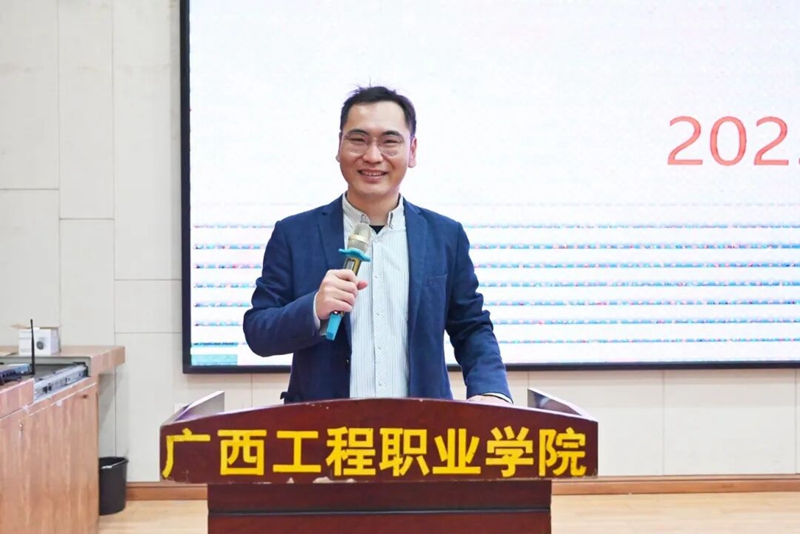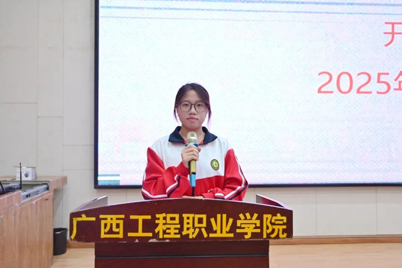 党委副书记黄秋霞宣布“广西工程职业学院 2025 年职业技能大赛结构设计赛道正式启动”,现场掌声雷动。