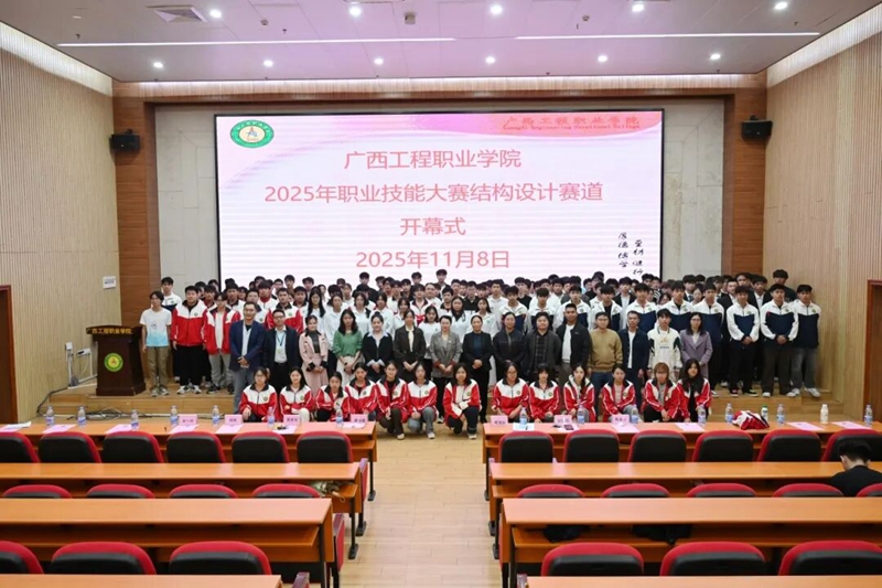 2025年11月8日上午8:00,广西工程职业学院 2025年职业技能大赛结构设计赛道开幕式在学校图文信息大楼一楼学术报告厅举行。本次赛事由学校教务处协办、土木工程学院承办,吸引全校100组队伍跨院竞技,开启工程技能与创新思维的巅峰对决。