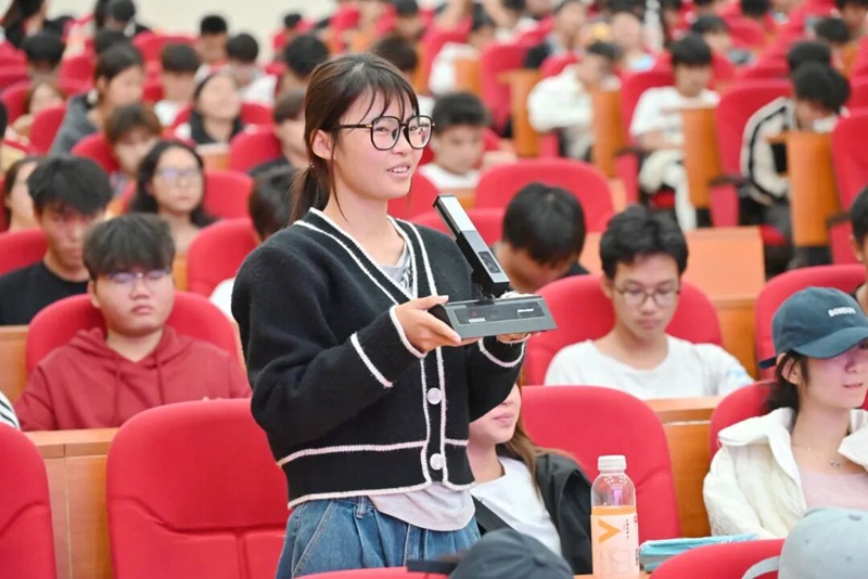 同学们积极参与到讲座的互动之中,回答有关的问题。