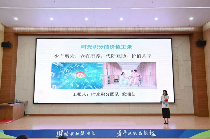 图为《时光积分——基于校企社联动赋能的代际互助养老模式创新》荣获金奖