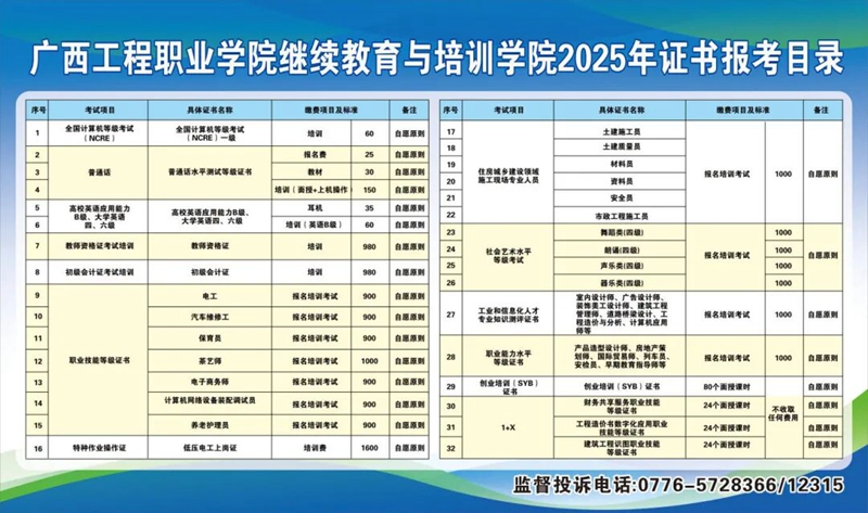 广西工程职业学院继续教育与培训学院始终高度重视学生的学历提升和技能发展,积极与各大高校合作,拓展多样化学历提升途径,开拓多种类型职业技能证书报考渠道。