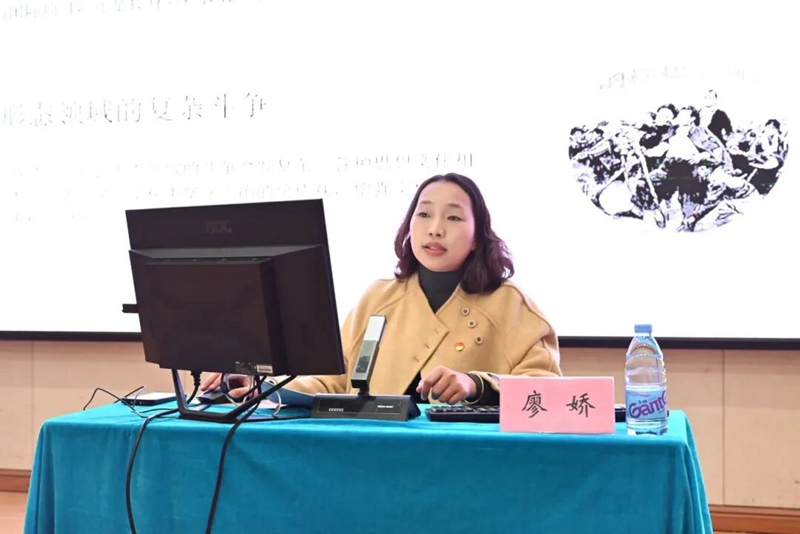 图为党支部书记、副院长廖娇作《时代召唤 青春担当-新时代青年的使命与理想》专题培训