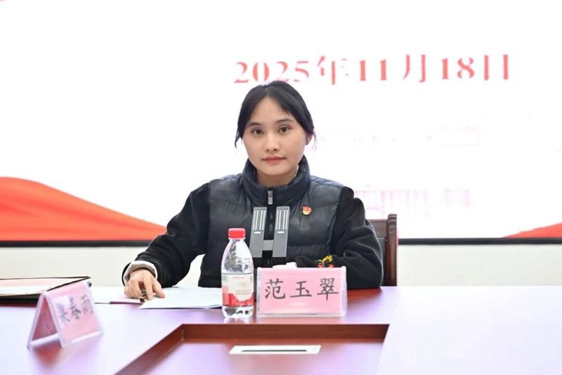 图为范玉翠同志发言