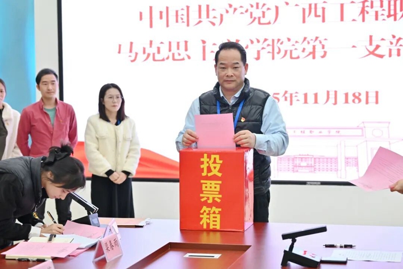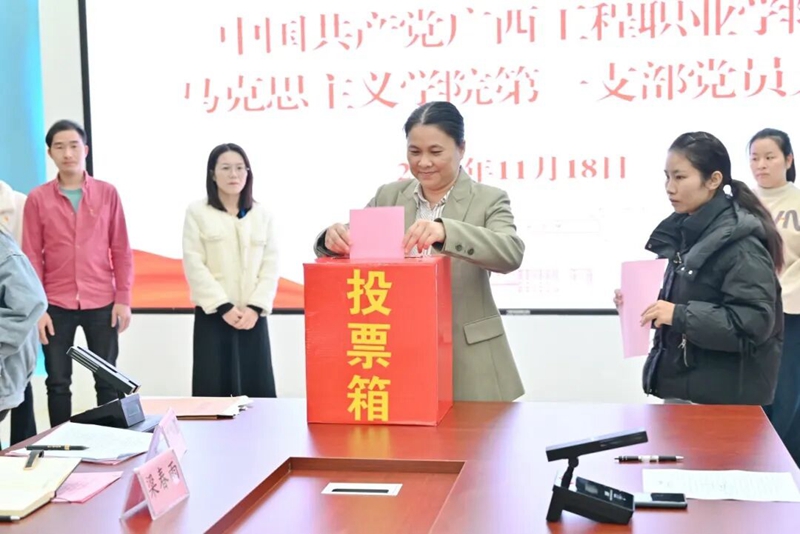 会上,分别宣读了《关于同意成立马克思主义学院党总支部的批复》《关于同意中国共产党广西工程职业学院马克思主义学院第一支部委员会委员候选人预备人选的批复》《关于同意中国共产党广西工程职业学院马克思主义学院第二支部委员会委员候选人预备人选的批复》等文件,明确了党支部成立的重要意义和工作要求。随后,按照《中国共产党章程》和基层党组织选举工作有关规定,全体党员以无记名投票方式差额选举产生了第一届马克思主义学院第一党支部委员会委员、第一届马克思主义学院第二党支部委员会委员。