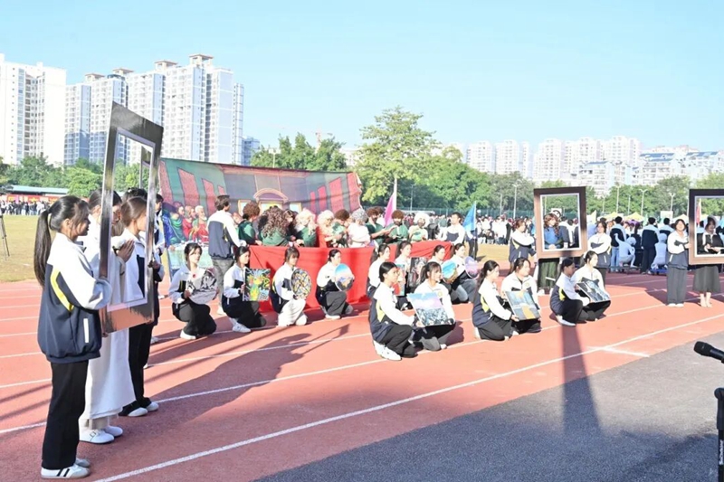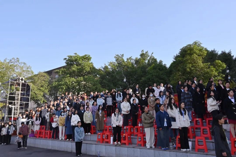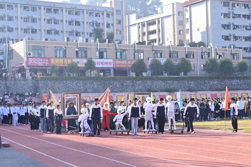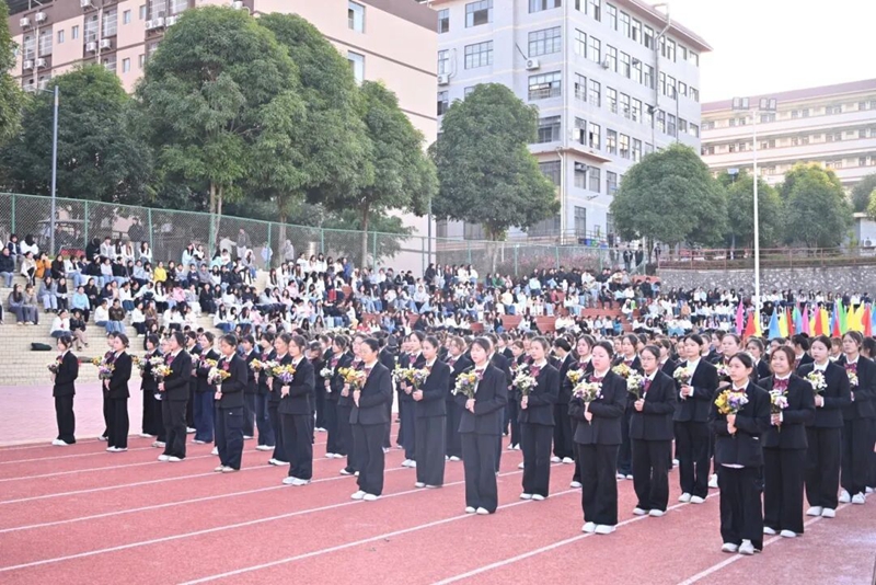 她们手捧鲜花,步履轻快,洋溢着青春朝气,展现着全校学子的蓬勃风采。