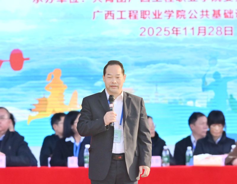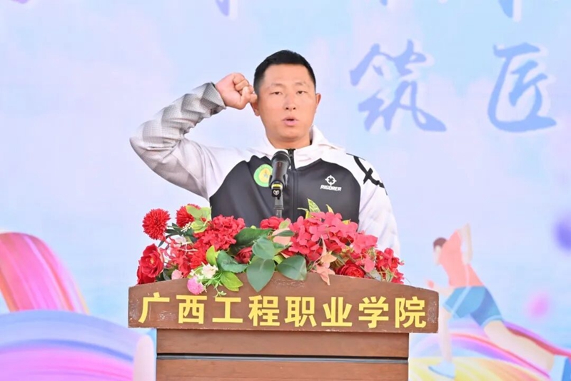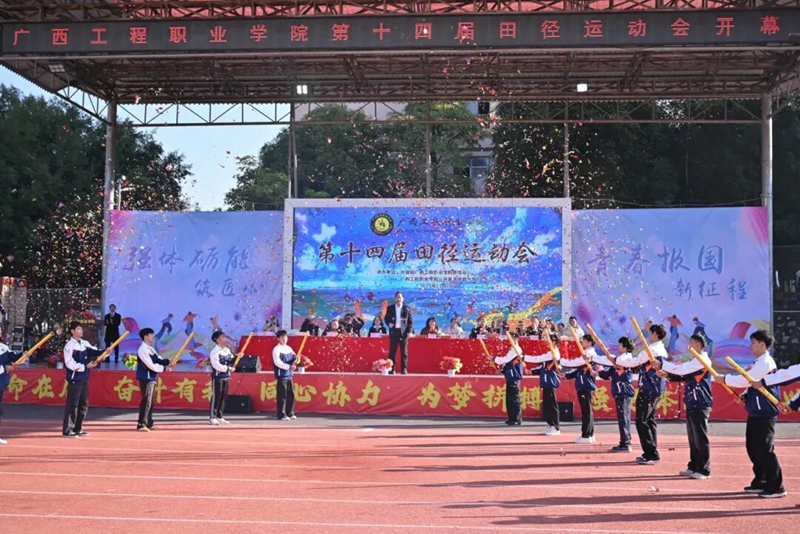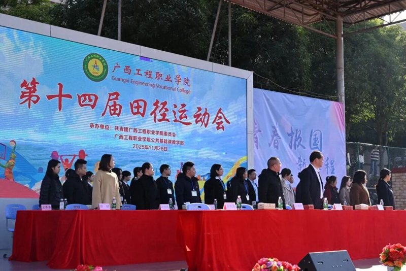 2025 年 11 月 28 日,以 “强体砺能筑匠心·青春报国新征程” 为主题的广西工程职业学院第十四届田径运动会,在学校运动场隆重拉开帷幕。学校党政领导班子成员、中层管理干部及各部门负责人出席开幕式现场,全体教职工与各二级学院学生代表齐聚赛场,共同见证这一燃情时刻。开幕式由学校党委副书记黄秋霞主持。
