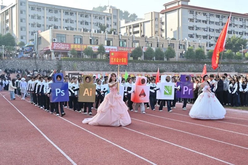 他们将PS、AI等设计软件元素融入队列,展现专业特色。步伐整齐,姿态昂扬,举手投足间尽显设计的灵动与执着。