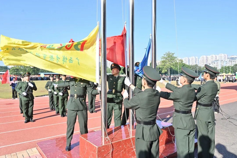 他们如移动长城般威严,护卫着庄严的五星红旗,意气风发尽显青年昂扬风貌。国旗飘扬,承载荣耀与信念,激励健儿奋勇拼搏、勇争排头!