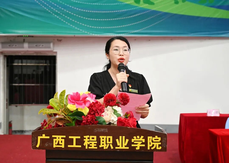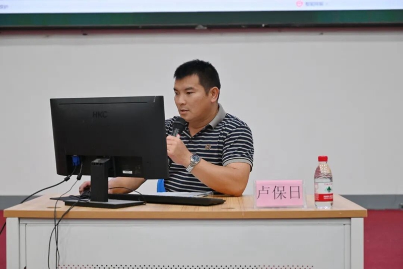 图为法务部部长卢保日作《广西工程职业学院章程》专题教育