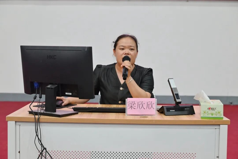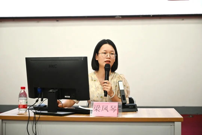 图为后勤管理中心副主任梁欣欣作《后勤管理》专题教育