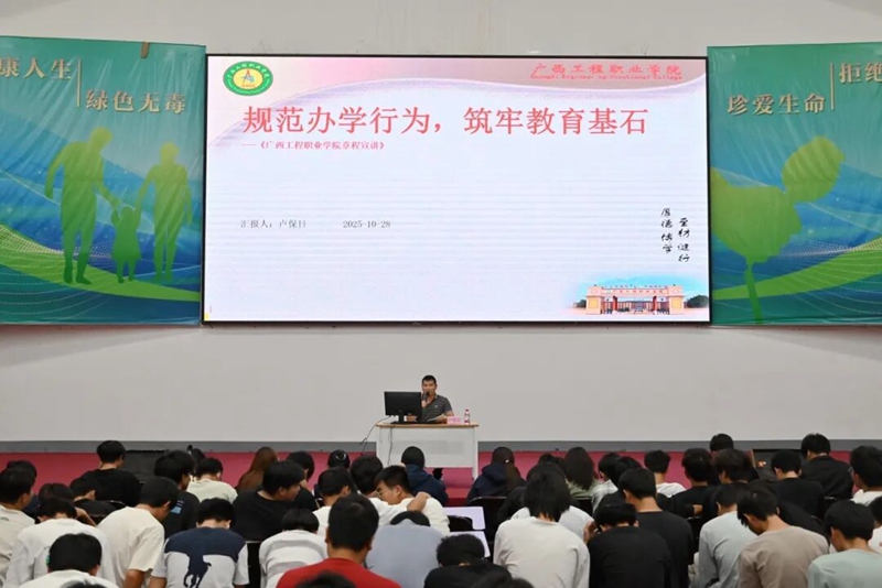 法务部部长卢保日开展《广西工程职业学院章程》专题教育,重点围绕学校历史沿革、发展定位、办学理念、治理架构、人才培养目标、师生权利义务、学校标识及学生管理等核心内容展开系统宣讲。通过此次《章程》学习,新生们进一步深刻领会其内涵要义,强化了对学校的认同感、融入感与参与感,树立起依法治校的理念,提升了自身法治意识,为更快更好适应大学学习生活筑牢了行动根基、明确了行为遵循。