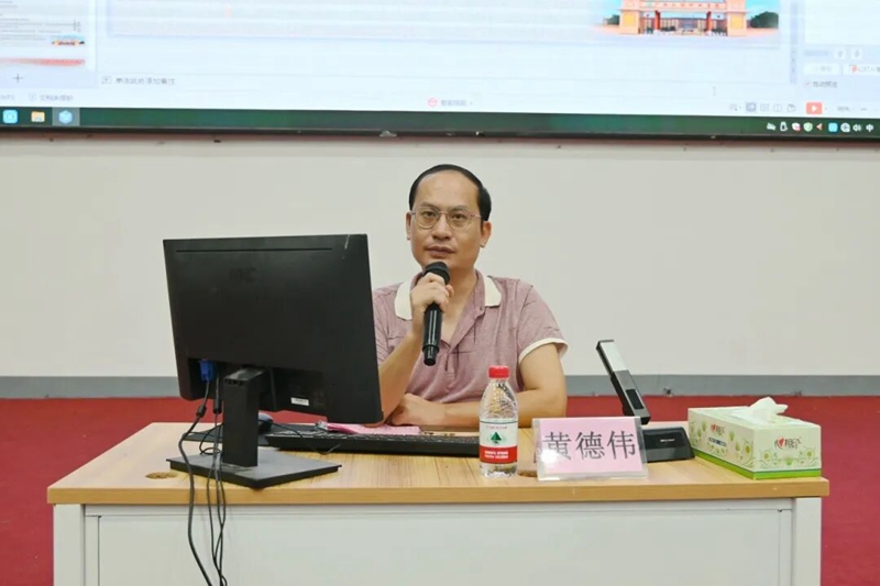 图为副校长黄德伟作《学生管理制度解读》专题教育