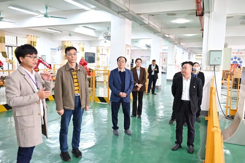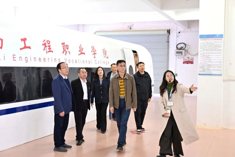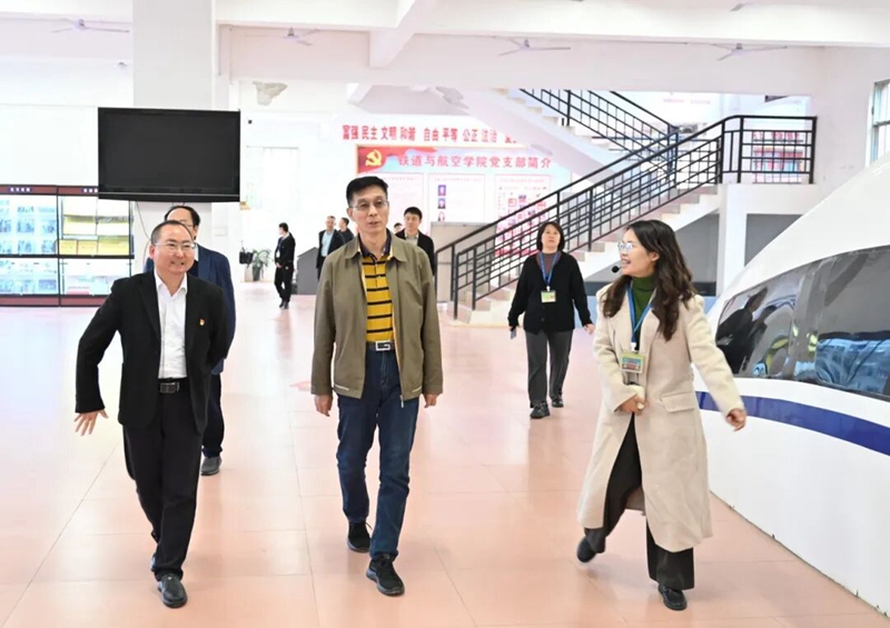 调研组先后走访了我校“就业服务工作站”、汽车与机电学院工业机器人实验实训室、铁道与航空学院航空舱模拟实训室及动车模拟实训室,实地了解我校就业服务开展、实训教学与企业合作、人才培养与行业对接等情况。