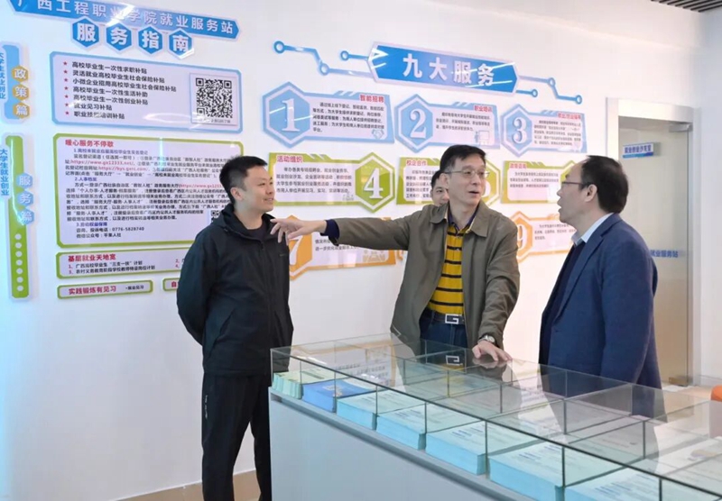 在就业服务站,彭高彬副校长向调研组介绍了站点运行机制、校企合作成果与毕业生就业跟踪数据。姜杰处长详细询问了服务日常访问、常见问题与数据共享情况,肯定了我校“精准聚焦、专业赋能、服务暖心”的服务模式。