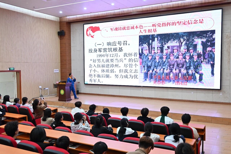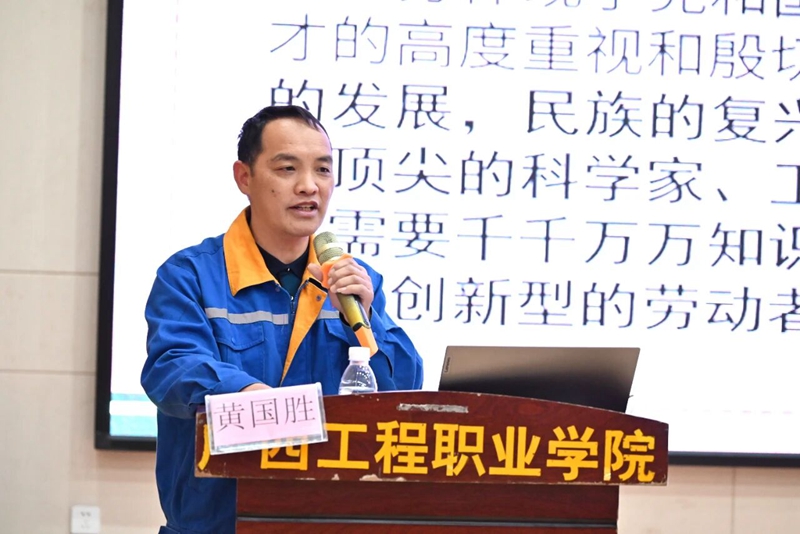 百色工匠、百色市技术能手黄国胜同志受邀为师生上了一堂感人至深、催人奋进的“大思政课”,师生代表近260余人聆听了宣讲。活动由学校党委主办、党委宣传部承办,学校工会及平果总工会协办。学校工会主席陈丽燕主持宣讲活动。
