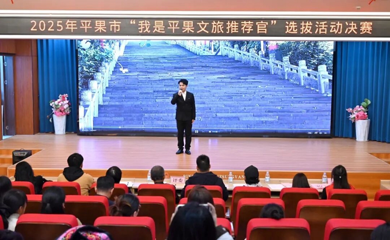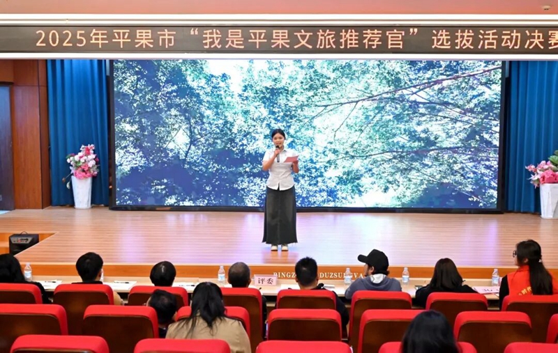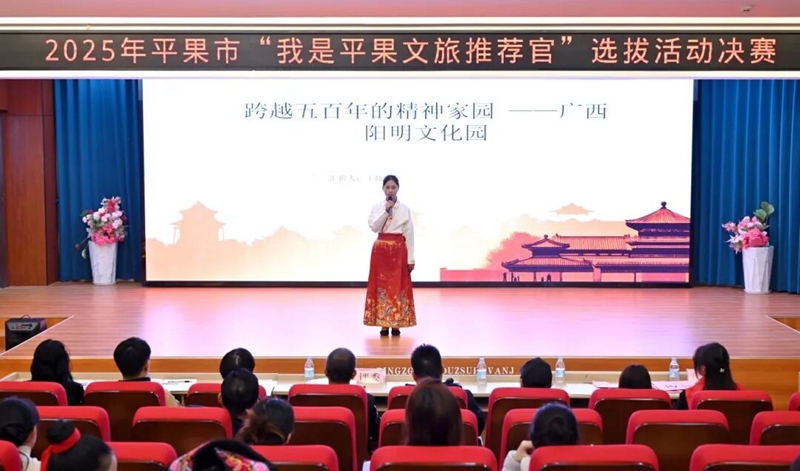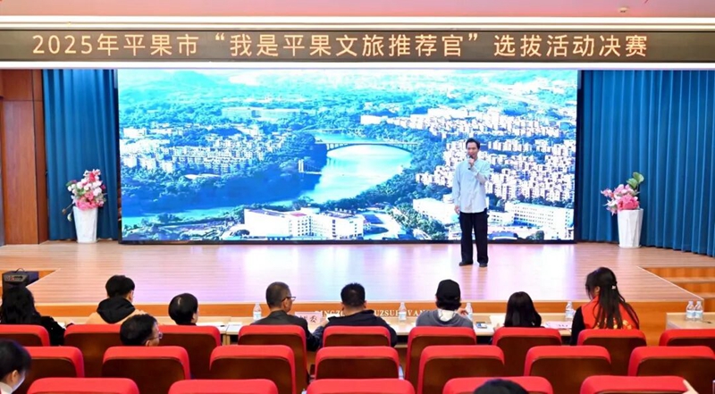 决赛现场,学子们以多元形式展现对平果文旅的深刻理解与热爱。第一个环节为3分钟主题演讲,学子们围绕“魅力平果,我来推荐”核心,讲述平果山水风光的灵秀之美,分享乡村文旅的烟火气息,生动勾勒出平果文旅的鲜活模样,赢得现场观众阵阵掌声。