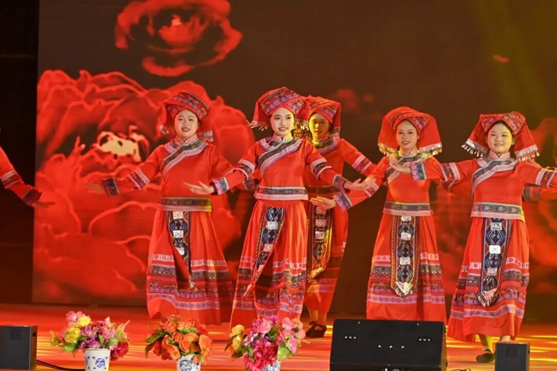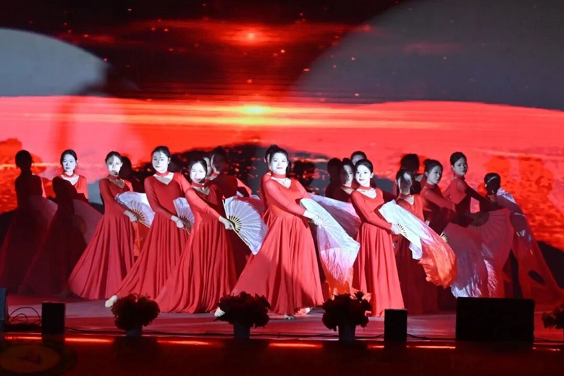 图为民族舞《党旗领航·元启华章》(表演者:教育学院 田玉丹 韦丽潇等)