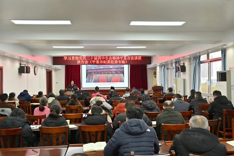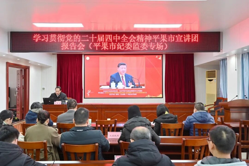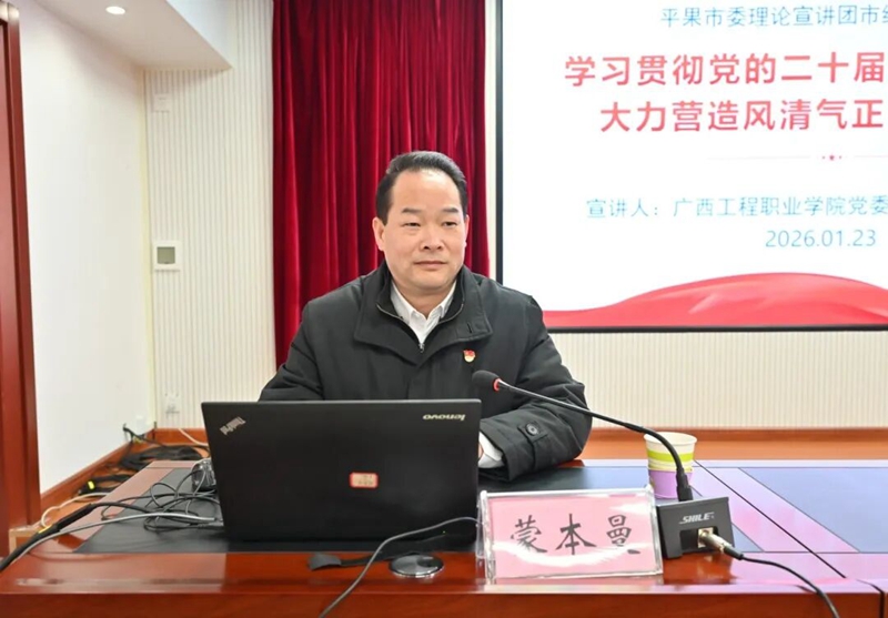 为深入学习贯彻党的二十届四中全会精神,推动全面从严治党向纵深发展,根据平果市委统一部署,1月23日,市委宣讲团成员,广西工程职业学院党委书记、政府督导专员蒙本曼博士赴市纪委监委机关,以《学习贯彻党的二十届四中全会精神 大力营造风清气正的政治生态》为题作专题宣讲报告。市纪委监委党员干部代表等聆听了报告。