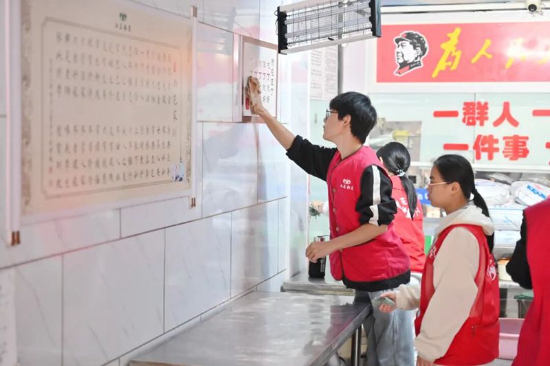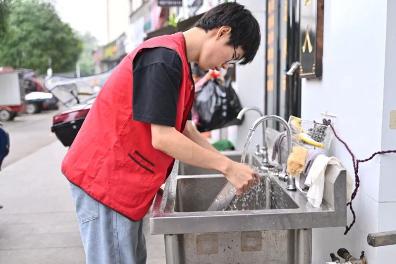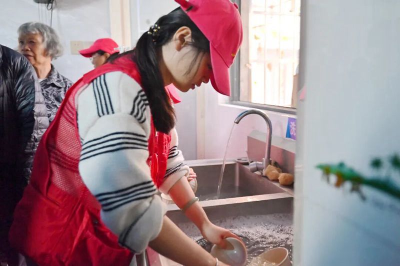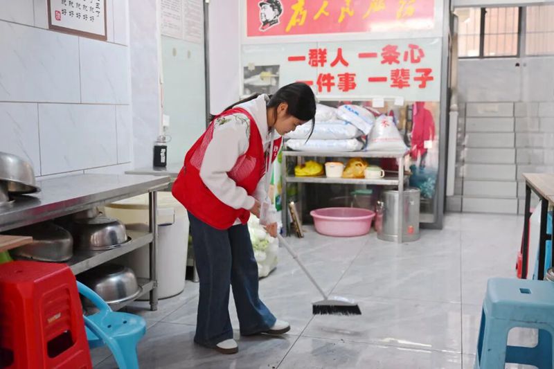 待老人们用餐完毕,志愿者们又立刻投入到收尾工作中,有序收碗、仔细清洗碗筷并放入消毒柜,擦拭桌子、拖净地面,将所有餐具、厨具整齐归置到指定位置,用认真与负责完成志愿服务的每一个环节,不辜负此次敬老之行的初心。