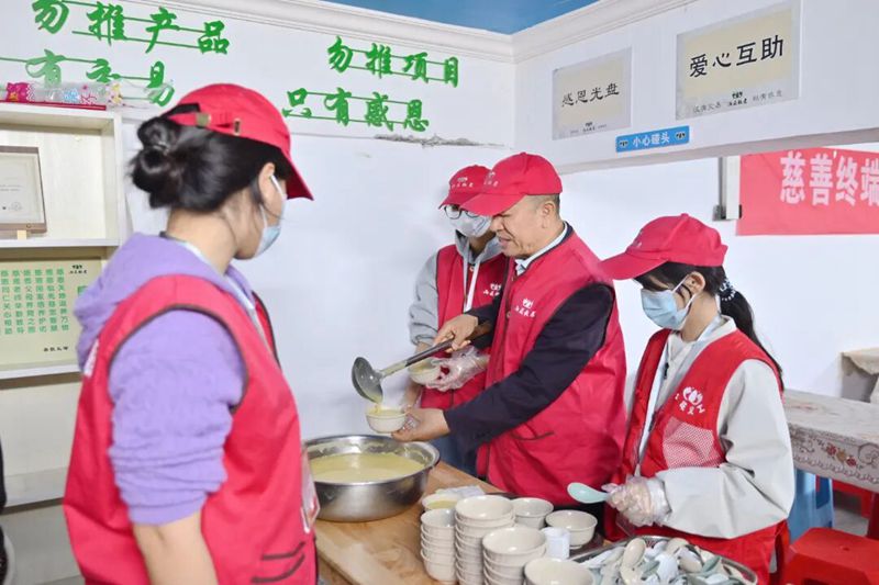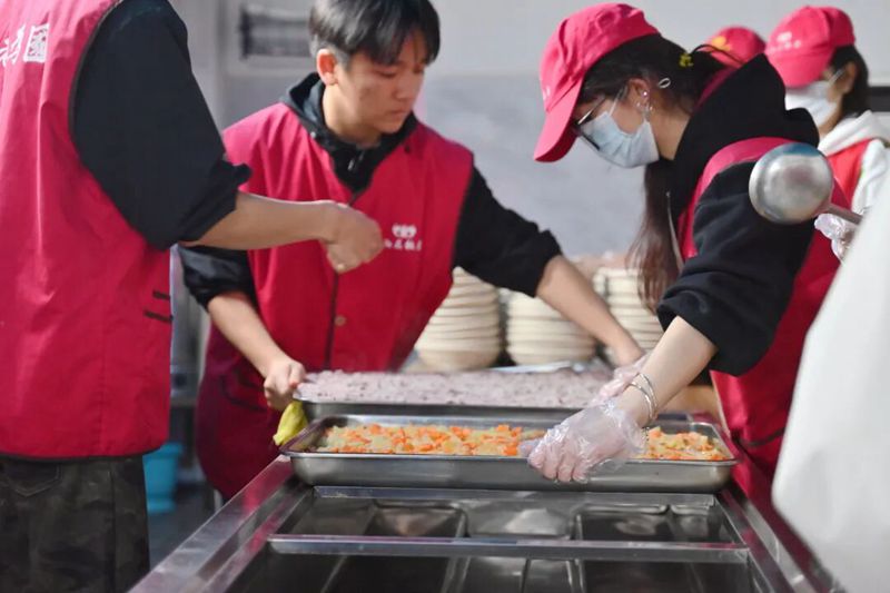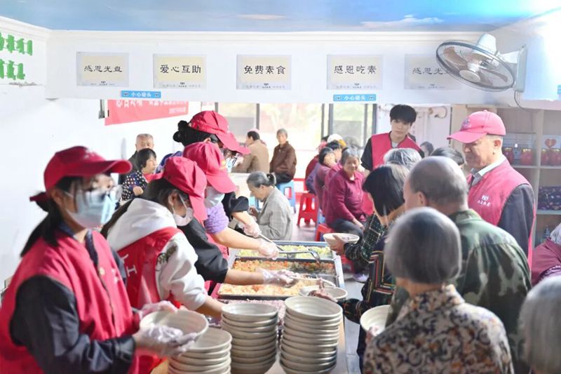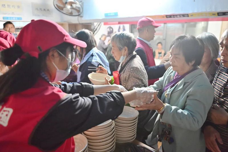开饭环节正式开启,志愿者们分工协作,为老人们细心打饭、打菜,贴心照顾每一位老人的用餐需求,用点滴细节传递着对老人们的关怀。