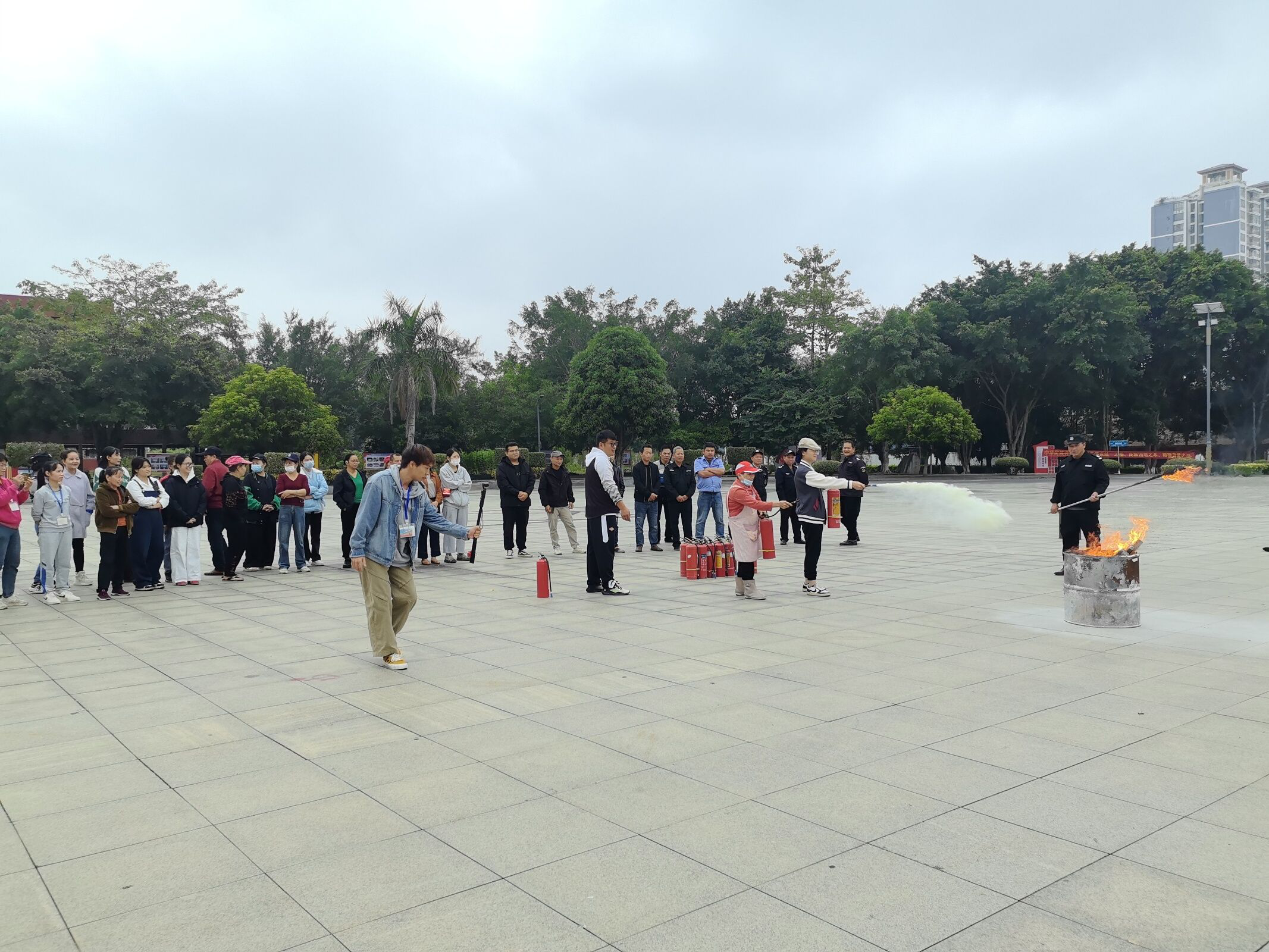 培训结束后,实战消防演练正式拉开帷幕。在鲁班广场,保卫处副处长王冬冬详细演示了干粉灭火器的操作步骤和使用要领,逐字拆解“提、拔、握、压”的灭火口诀,确保每位参与人员都能清晰掌握操作细节。随后,参与人员分组进行实操演练,大家踊跃参与,按照所学要领逐一操作,亲自体验灭火过程。王副处长在旁全程指导,及时纠正握姿不当、按压时机不准等不规范动作,确保每位参与者都能熟练掌握基本灭火器的使用方法。整个演练过程紧张有序、分工明确,达到了“以演促学、以练促防”的预期效果。