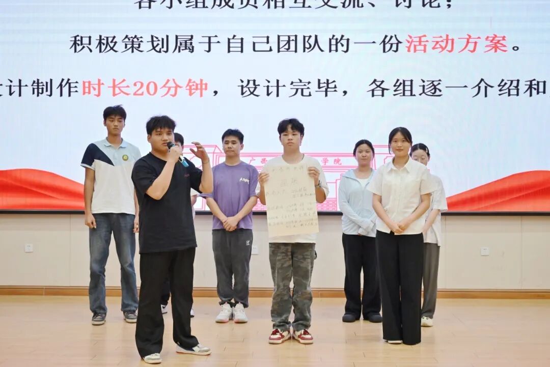 在团建基础上,各小组成员热烈讨论、互通想法、全力策划,快速打磨出专属活动方案。展示环节中,各组脑洞大开的创意解读搭配幽默风趣的介绍,瞬间点燃现场氛围,展现出广工程院学子的创新活力与协作风采。