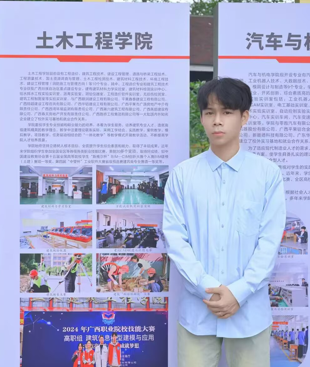 农伟,男,共青团员,2025届自治区级优秀毕业生。就读于广西工程职业学院土木工程学院工程测量技术专业,现担任网络与电教中心见习教师。曾连续三年担任2022级工程测量技术1班班长。