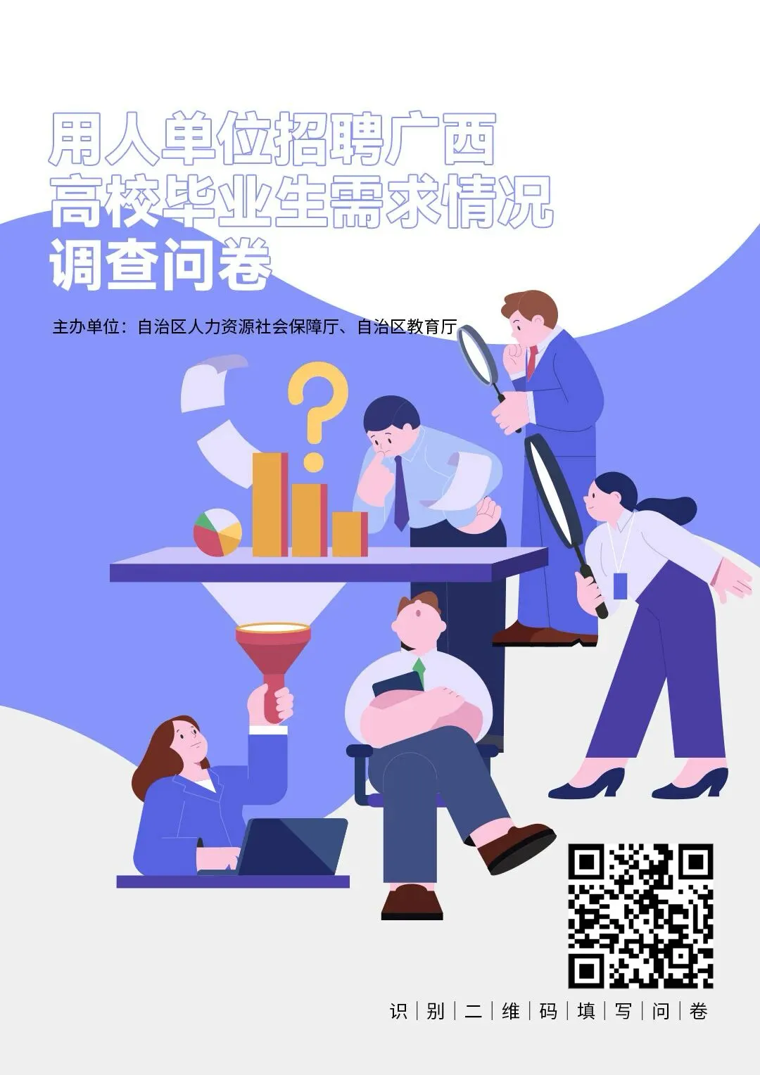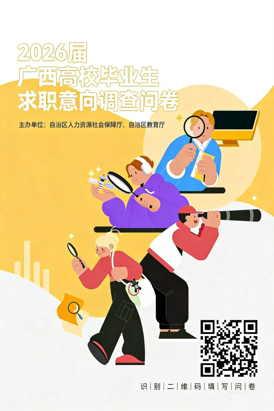 为深入贯彻党的二十届四中全会精神,全面落实党中央、国务院和自治区党委、政府对高校毕业生就业创业工作的决策部署,分析研判2026届高校毕业生就业形势,提升公共就业服务的精准性和有效性,自治区人力资源社会保障厅、自治区教育厅联合开展本次问卷调查。